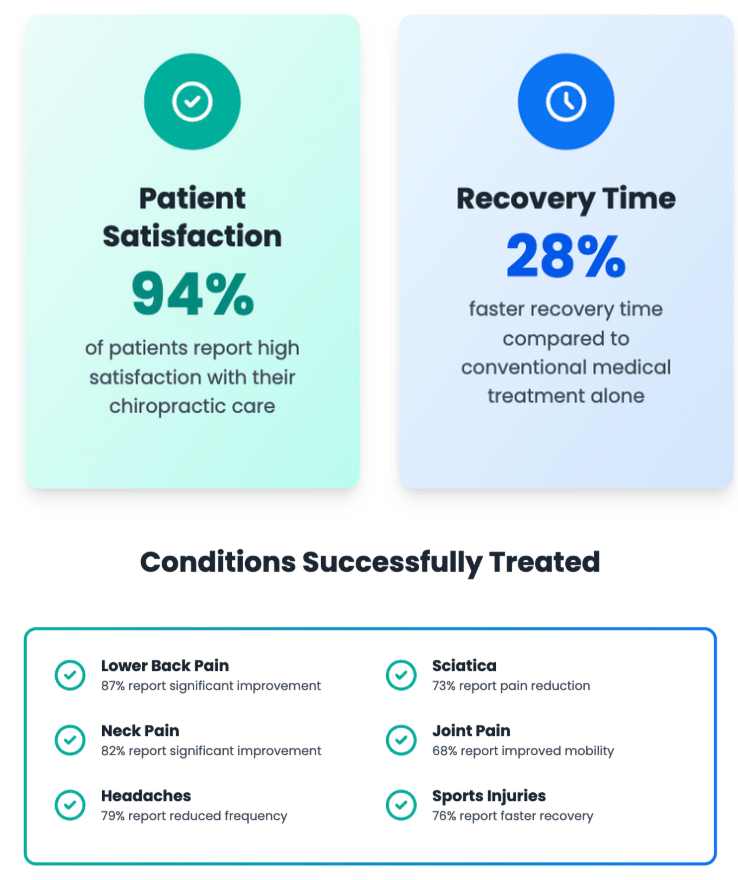 Chiropractic care is supported by a growing body of research demonstrating its effectiveness for various musculoskeletal conditions. Explore the statistics and studies that highlight the benefits of chiropractic for pain relief, improved function, and overall wellness.