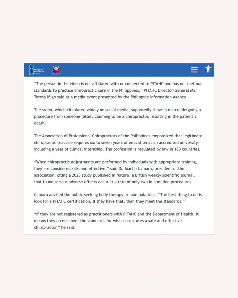 Recent press article from the Philippine Information Agency has highlighted developments in chiropractic care and healthcare services in the Philippines. This article provide valuable insights into the growing recognition and acceptance of chiropractic treatment within the local healthcare community.